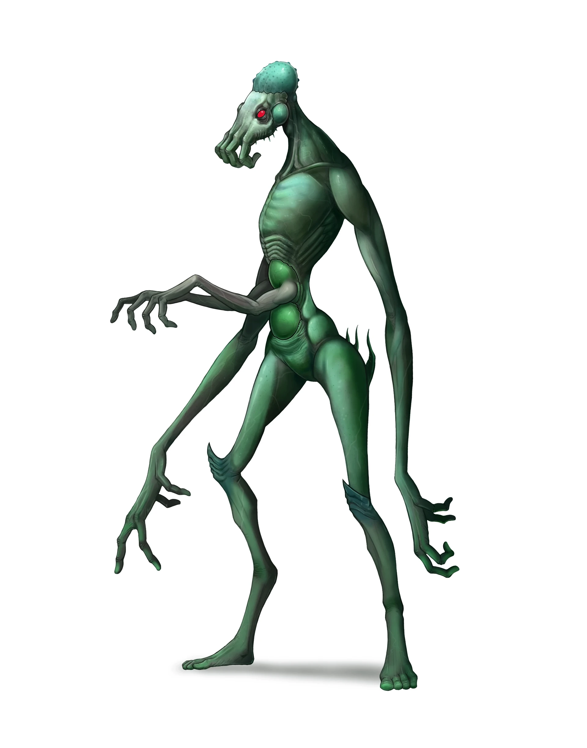 The Green Creature can actually change its color to blend in with its environment. It can form its body to appear to be part of trees and bushes on its planet. The green creature may alert nearby predators to defend it if it feels its territory is being invaded by other hostile lifeforms.