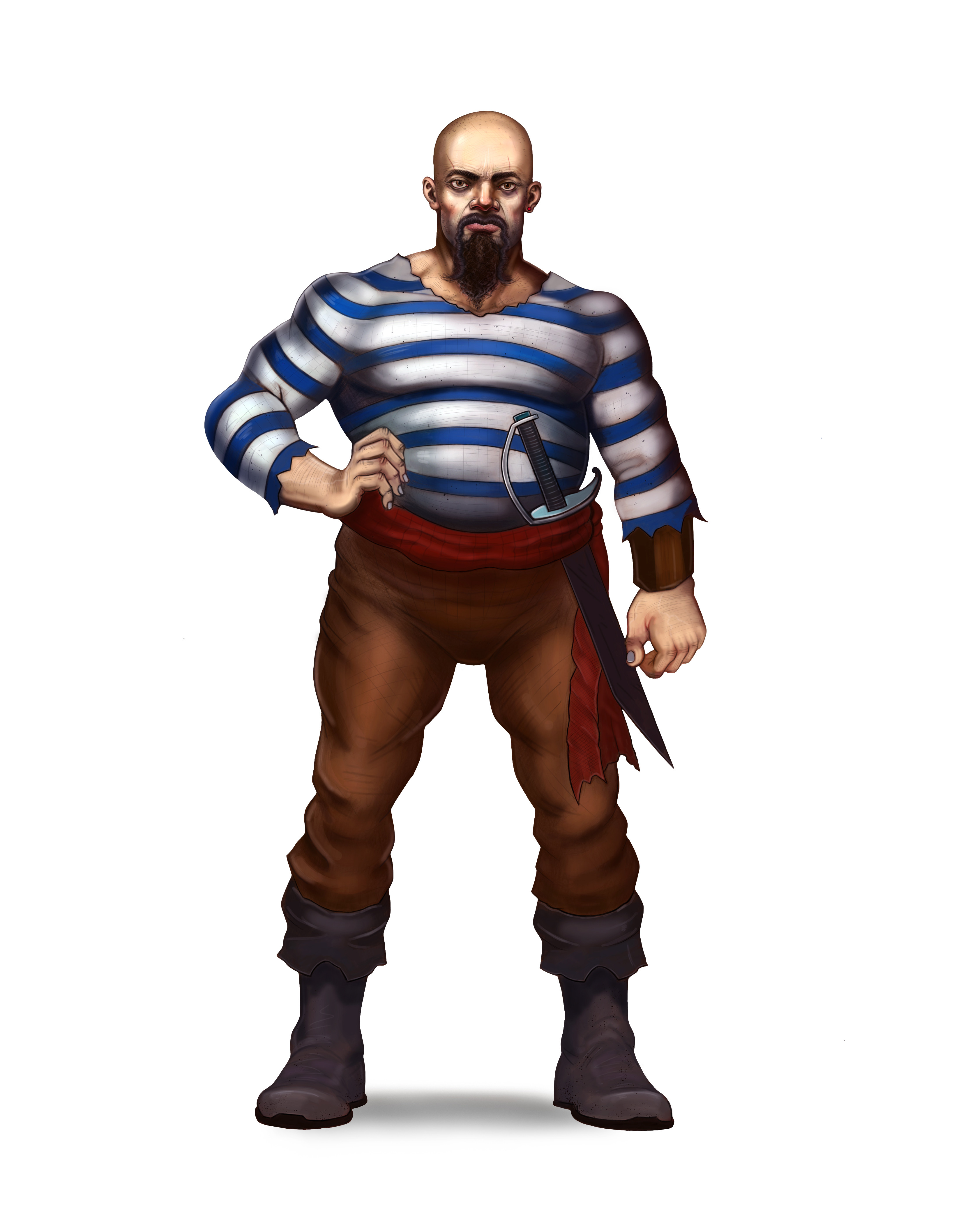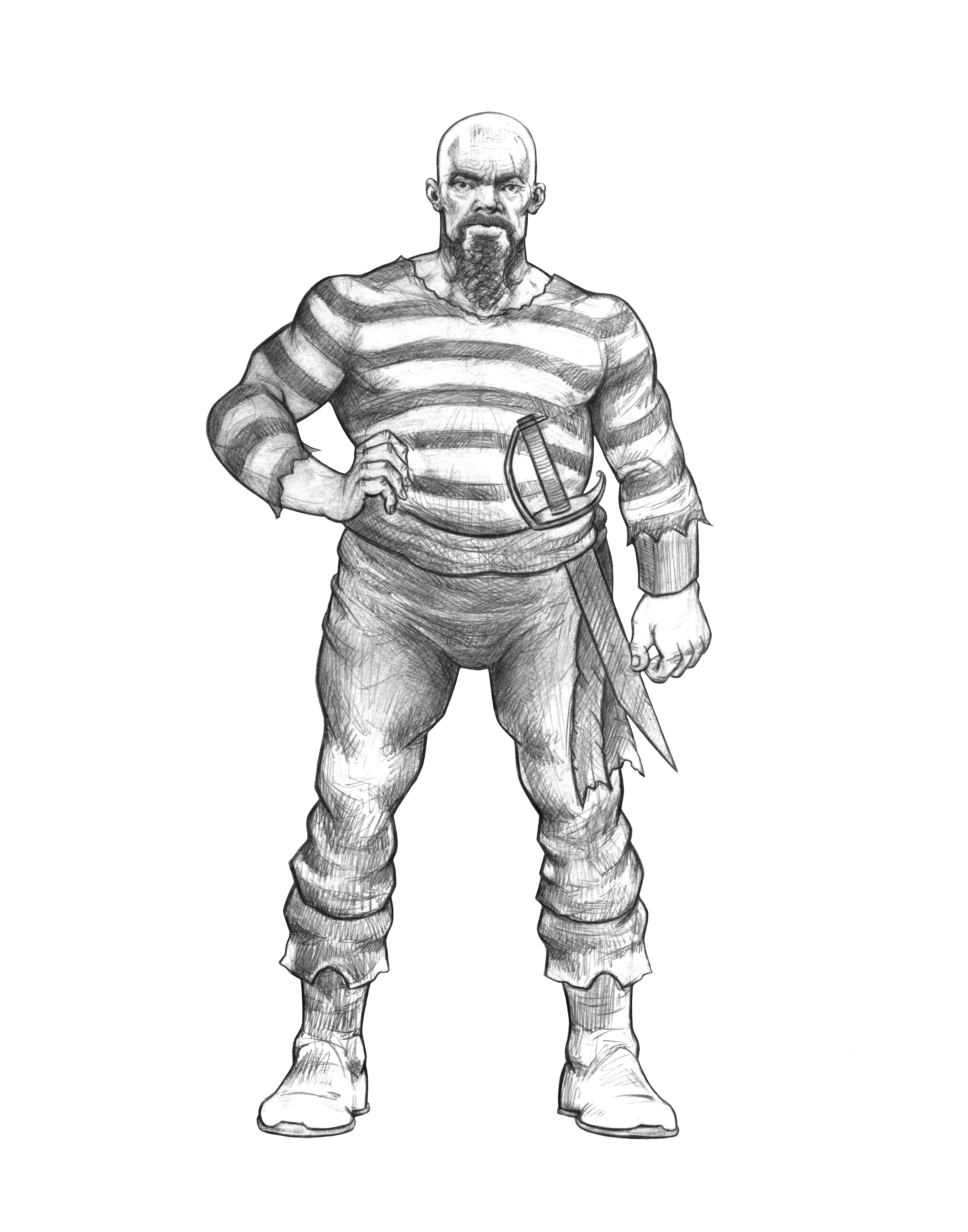 This large, burly pirate is a veteran on his ship and has sailed many seas with his crew. With a cutlass in his sash, he is always ready for any encounter.